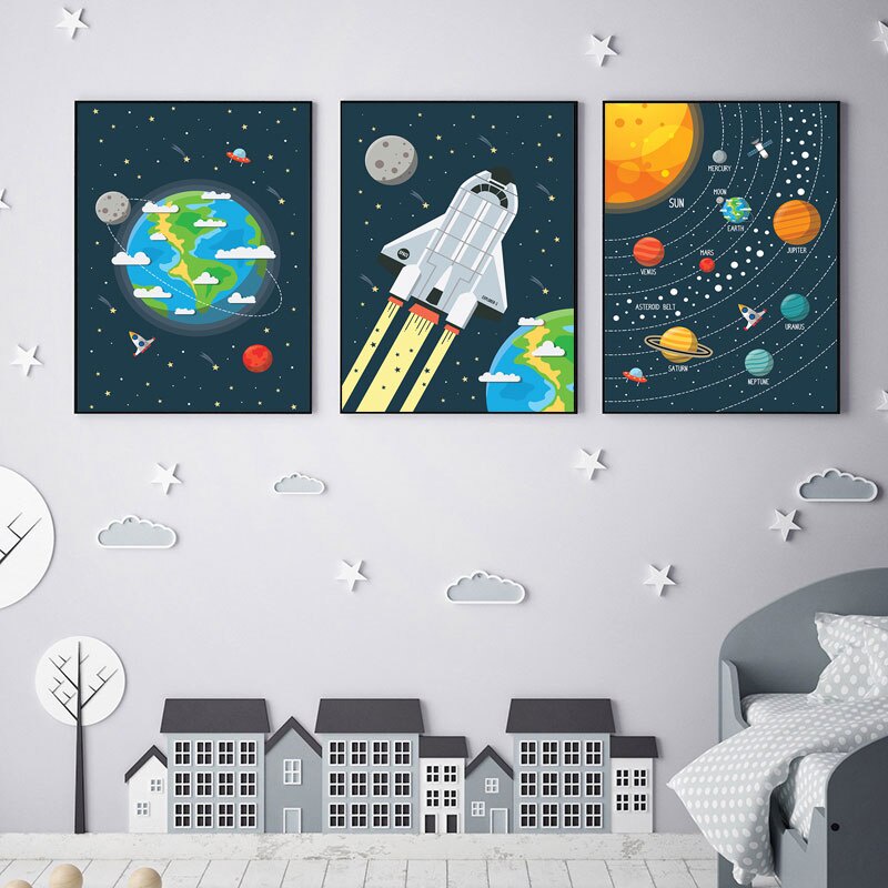 Astrdecor Nursery Solar System Earth Canvas Painting Wall Art Shopee Malaysia